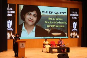 The programme was graced by the esteemed Chief Guest, Smt. G. Sundari, Director and Co-Founder of Spiral IUP Solutions. In her address, she encouraged students to dedicate more time to reading and writing, emphasising that imagination plays a vital role in shaping ideas into meaningful books. Drawing from her own life experiences, she inspired students to believe in their creative potential and motivated them to write and publish their own books.