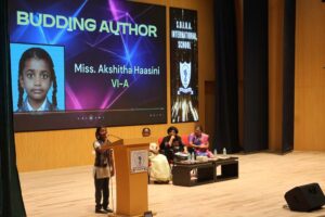 Adding pride to the occasion, three young talents of the school — Ashleigh (Grade 6C), Harish Bhairavan (Grade 9A), and Akshitha Haasini (Grade 6A) — were recognised as the budding authors of the institution, having successfully published their own books. They shared their inspiring journeys of writing and publishing, speaking about the challenges they faced, the joy of seeing their ideas in print, and the importance of perseverance and creativity. Their speeches deeply motivated fellow students to explore their own writing abilities.