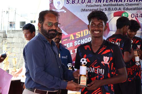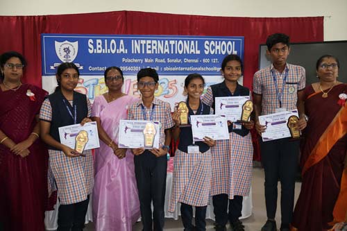 Vetrivel S U - 8 A Silver Medal in 200 Mts. Dash and Bronze Medal in 100 Mts. Dash and in Long Jump , Gold Medal in Long Jump in Junior Boys category in the Chennai Regional Level Sports Competition